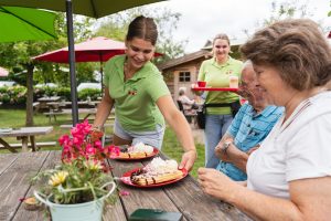 Het oogsten is prettig staand werk tussen de bomen en onder de overkapping. Na het oogsten maken we de kersen klaar voor de verkoop door ze te sorteren, verpakken en afwegen. In onze pop-up winkel verkopen we naast kersen ook allerlei kersenproducten en cadeaupakketjes die regelmatig aangevuld of gemaakt moeten worden. En op onze boomgaardterrassen kunnen klanten terecht voor de lekKERSte koffie, gebak, ijs, wafels en lunch.